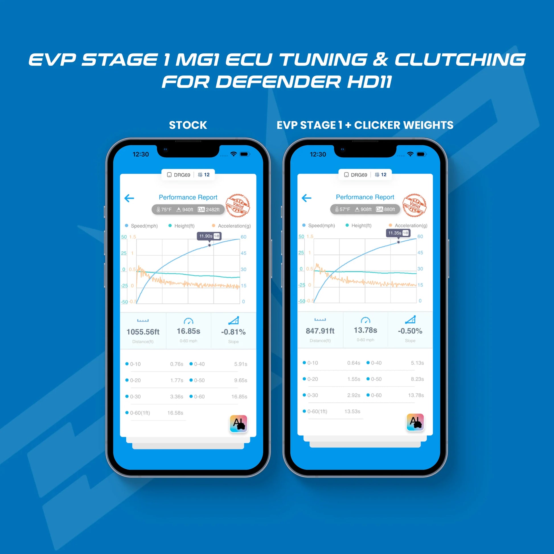 Standard EVP MG1 ECU tuning features include raised rev and torque limits, remapped fueling and ignition timing, as well as numerous safety features to ensure optimal performance in all conditions. EVP’s integrated engine cooling options for the fan on/off temperatures allow customers to choose between the stock parameters/temperatures for colder climates, or lower on/off temperatures for warmer climates.