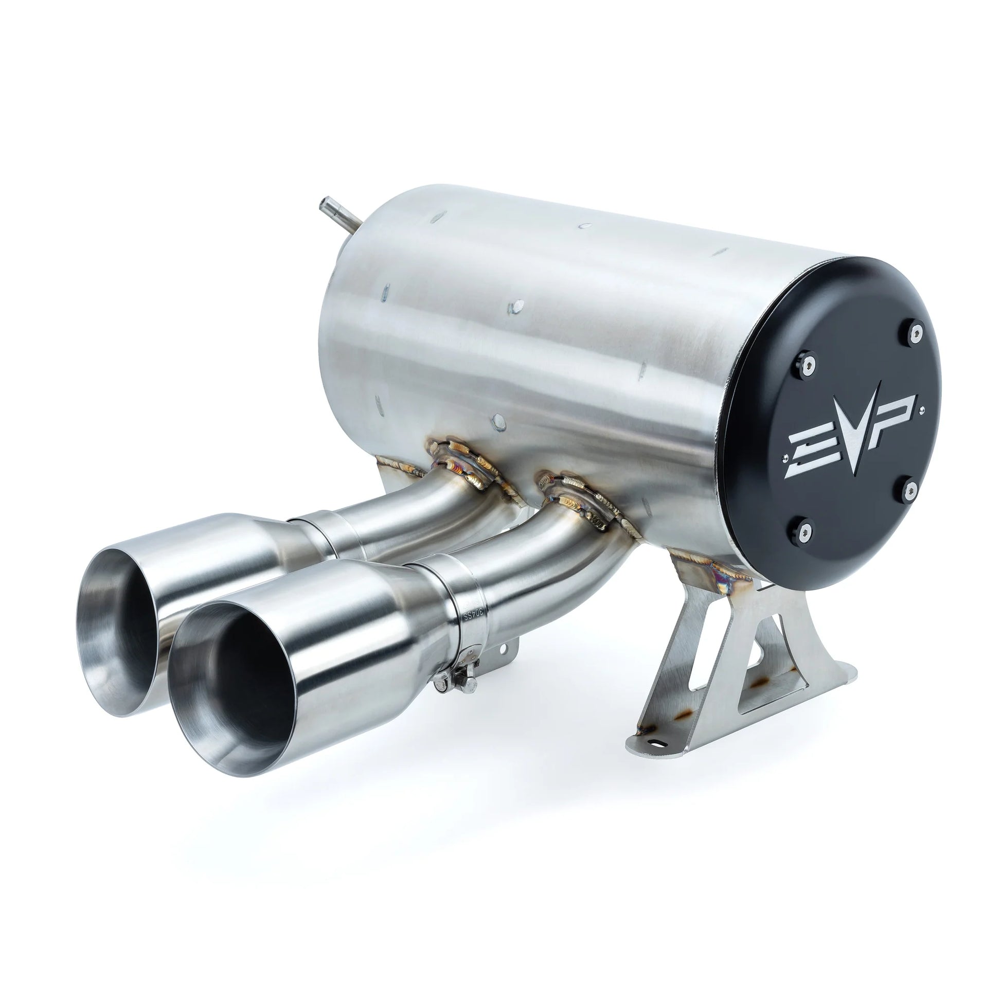 Handmade in limited batches, all EVP Maverick R Dynamic Twin Exit Mufflers come with a serialized production number badge welded onto the canister.